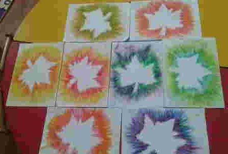 Ambil beberapa helai daun kemudian tata dengan rapi dengan cara ditumpuk. Ulangi langkah di atas. Tunggu sampai kering dan angkat daunnya. Lukisan daun pun sudah jadi.